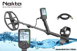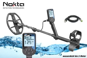 Professioneller Metalldetektor mit Multifrequenz-Technik, bis zu 5 Meter Tauchtiefe wasserdicht. Das Paket enthält einen hochwertigen Funkpinpointer mit Eisenerkennung.